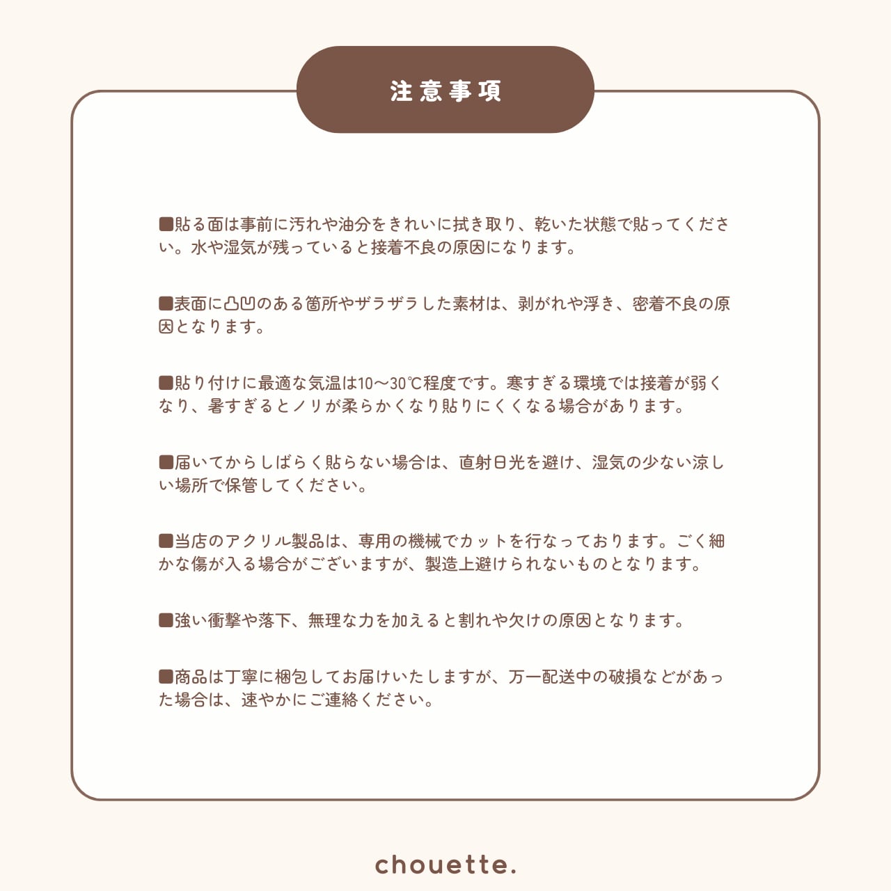 マットな質感のアクリル素材を使用し、両面テープで簡単に取り付け可能。