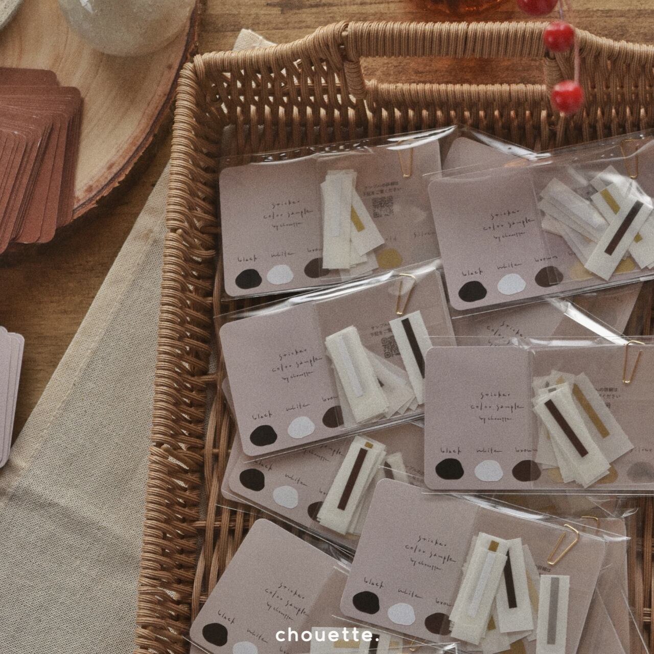 chouette.で使用している表札ステッカーやドアサイン用のステッカーサンプル12種類をお送りします。